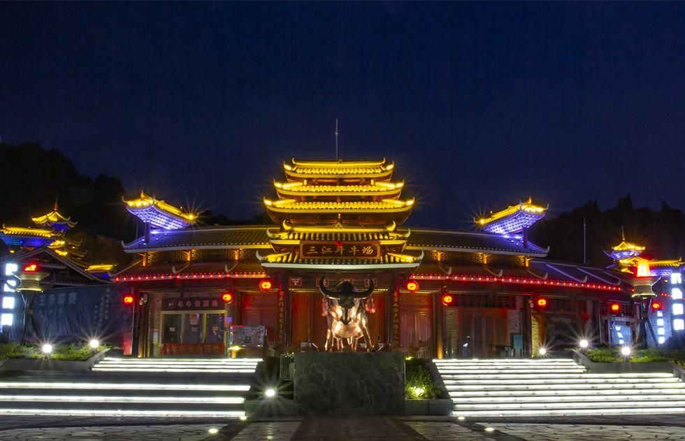 古代建筑多采用金黄光,医院采用金光和暖色白光,商业街多采用金色和全彩色灯光。照明模式可以将不同的照明方式结合起来,可以增强两侧不同建筑的照明效果,更好地增强建筑的层次感。