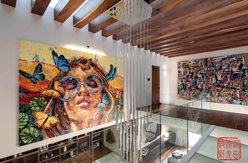客厅边缘区域一般有装饰挂画,可以使用可调角度的轨道聚光灯提供照明,并为附近空间提供间接照明,客人可以清楚地欣赏您的挂画。